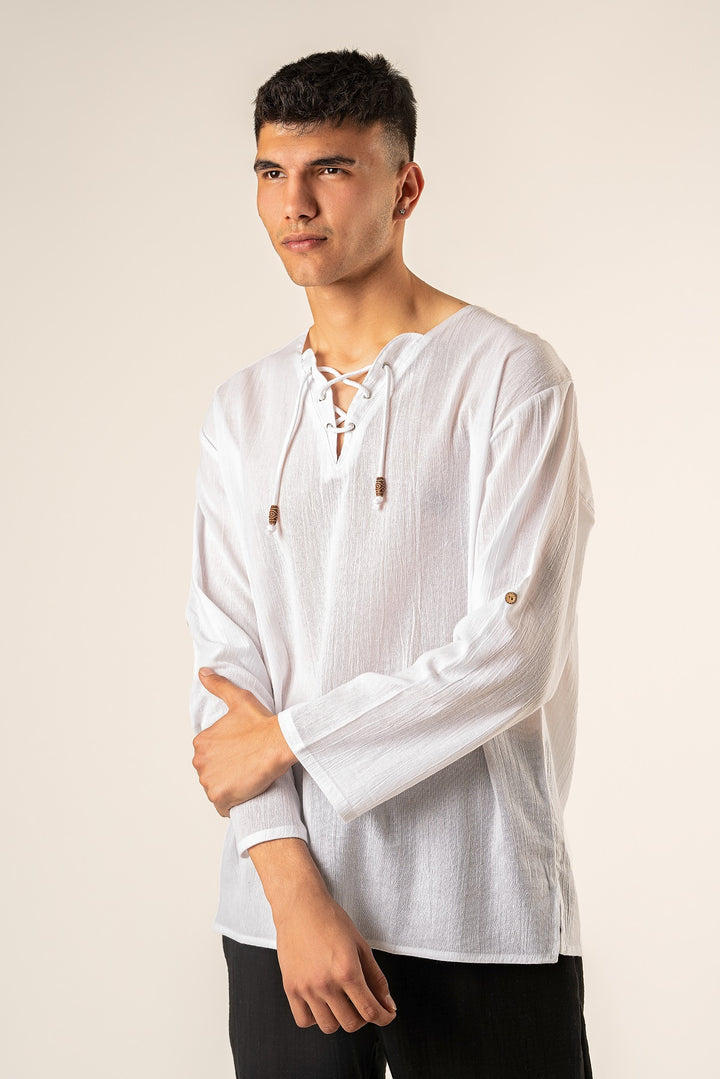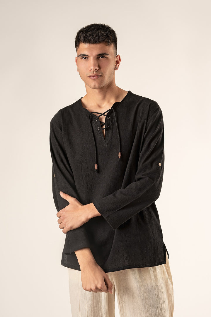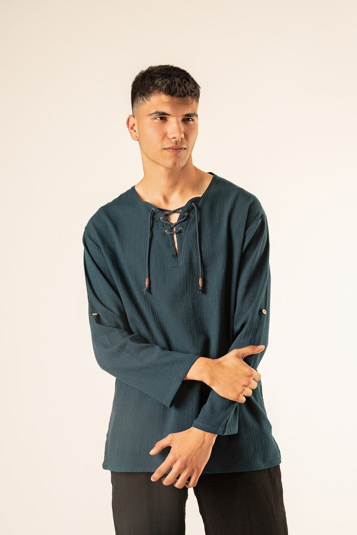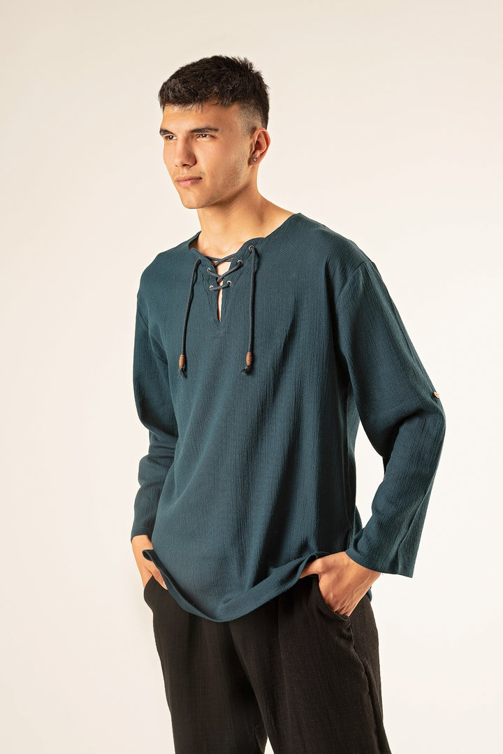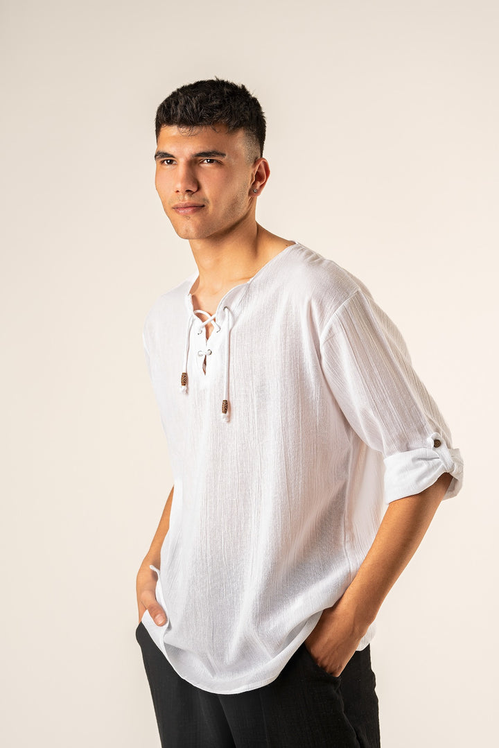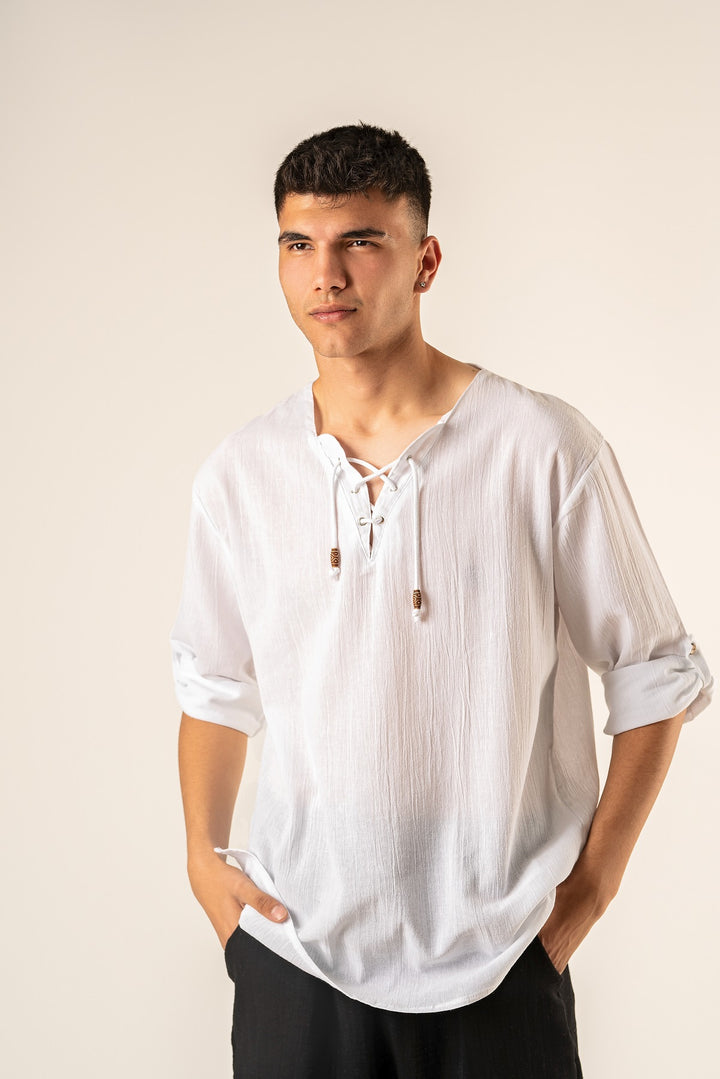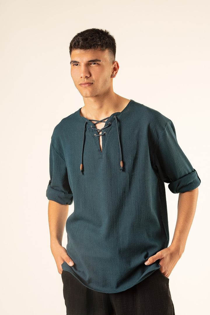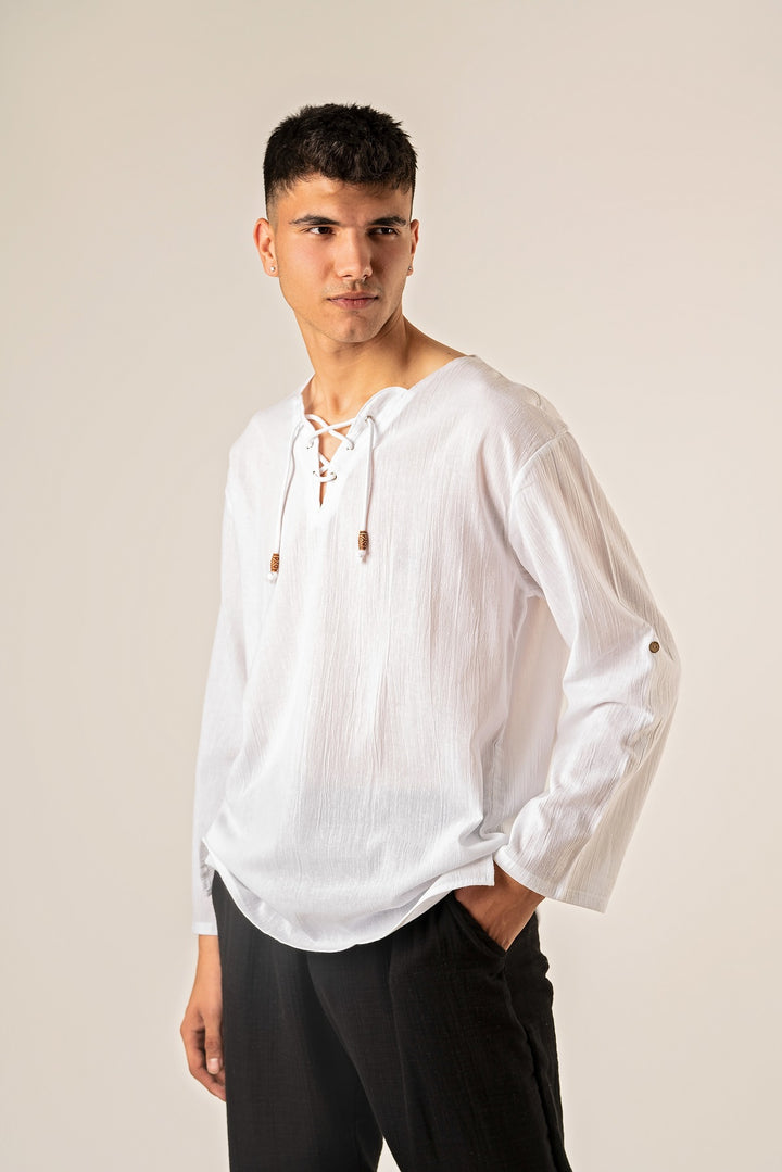 Doğallığı ve şıklığı bir arada sunan %100 naturel pamuktan üretilmiş önü bağcıklı uzun kol gömlek, modern detaylarıyla dikkat çekiyor. Rahat kesimi ve özgün tasarımıyla günlük kullanımdan özel günlerinize kadar her durumda şıklık ve konfor sağlar.