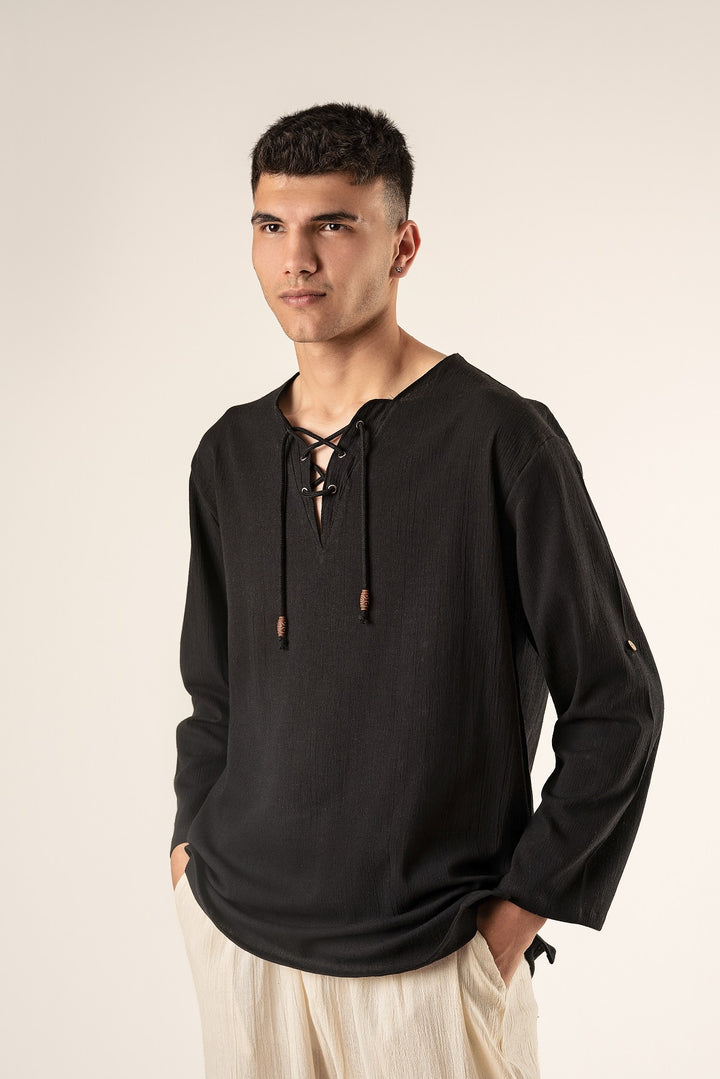 - Tasarım: Önü bağcıklı detaylar, gömleğe modern ve dinamik bir hava katıyor.