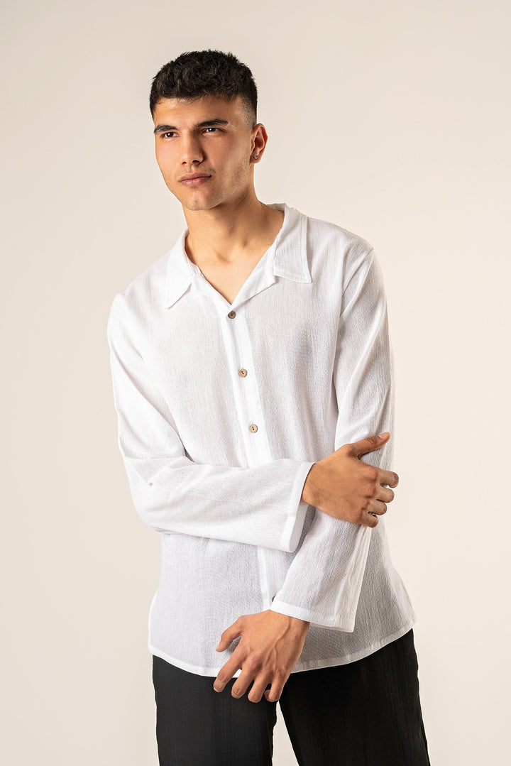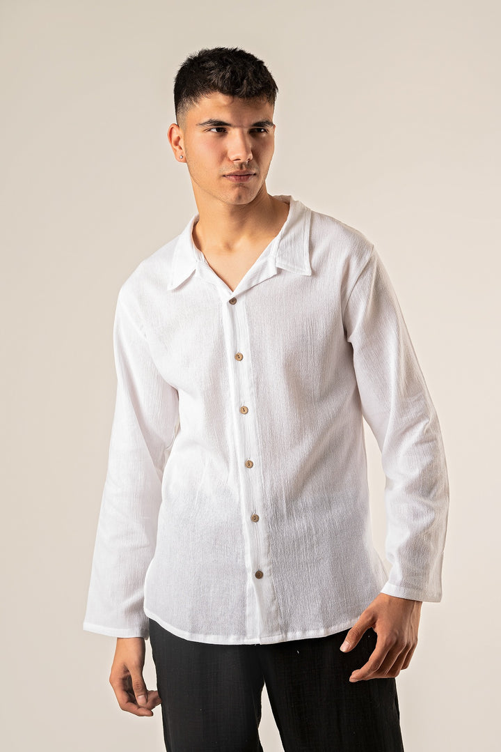 Bu %100 naturel pamuk yarım düğmeli oversize yakalı uzun kollu erkek gömlek, modern tasarımı ve doğal malzemesiyle günlük kullanımdan özel günlerinize kadar şıklığınızı tamamlar.