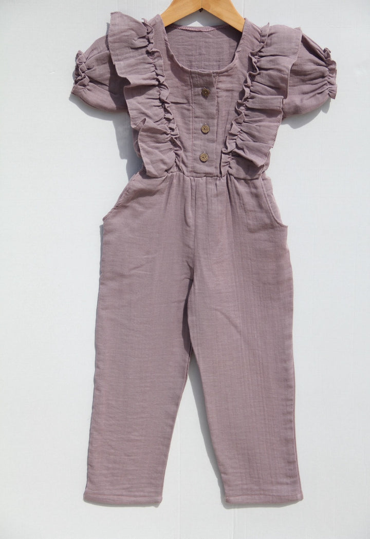 Bu %100 pamuk müslin fırfırlı çocuk tulumu, çocuğunuzun konforunu ve şıklığını ön planda tutar. Günlük kullanımdan özel günlerine kadar çeşitli kombinlerle rahatlıkla kullanabilirsiniz.