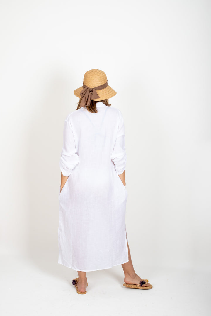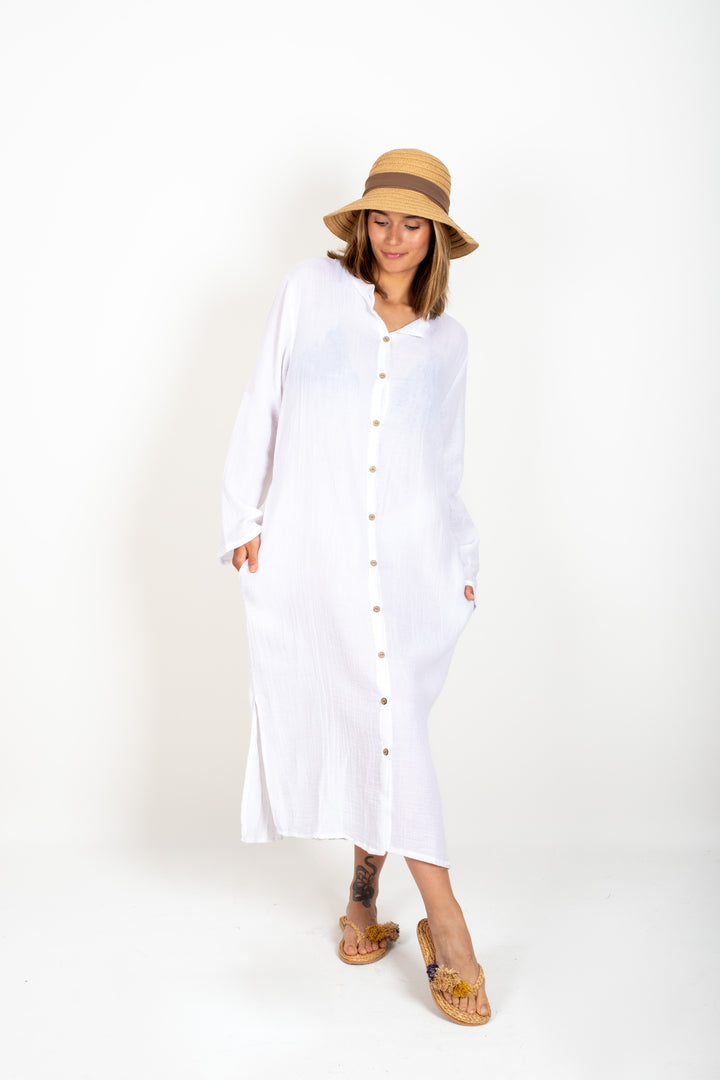 Botex %100 Pamuk Vual Tam Boy Düğmeli Plaj Gömleği