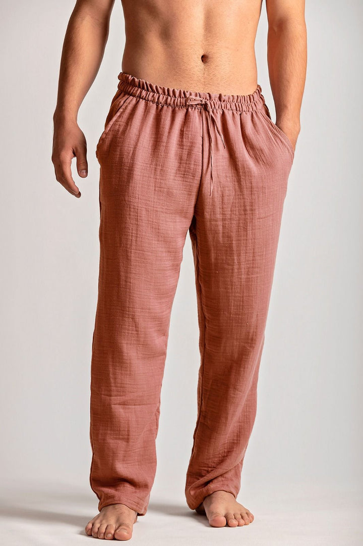 Konforu ve yumuşaklığı bir araya getiren %100 pamuklu müsli kumaştan üretilmiş beli lastikli pijama pantolon ile dinlendirici bir uyku deneyimi yaşayın. Yüksek kaliteli pamuklu dokusuyla cildinize nazik davranırken, rahat kesimi ve esnek beli sayesinde hareket özgürlüğü sunar.